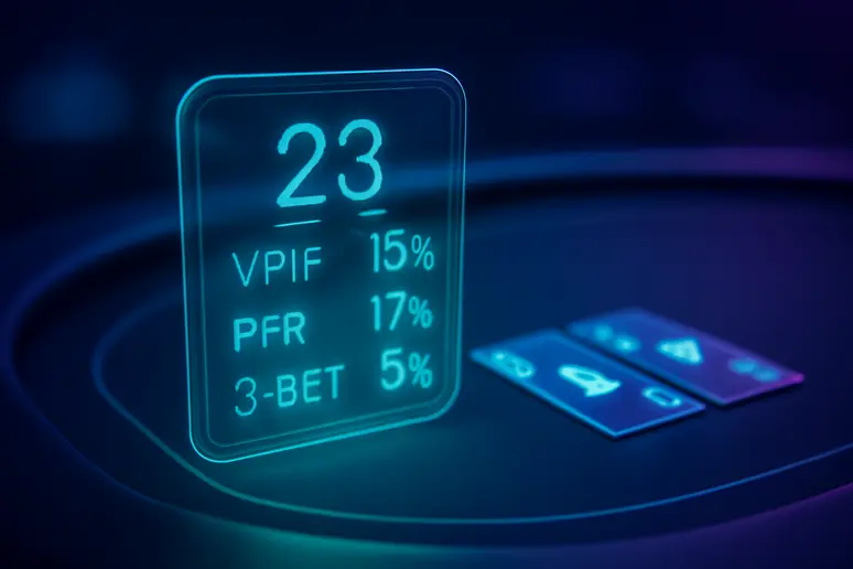 VPIP (Voluntarily Put Money In Pot) คือสัดส่วนของมือที่ผู้เล่นยอมใส่เงินเข้าไปในพอตด้วยความสมัครใจ (ไม่รวมบลายด์ที่บังคับ) ค่า VPIP สูงหมายถึงผู้เล่นเล่นหลากหลายมือมาก ส่วน PFR (Pre-Flop Raise) คือสัดส่วนการยกเพิ่มก่อนการเปิดไพ่กลาง (pre-flop) ซึ่งสะท้อนความก้าวร้าวของผู้เล่น การอ่านค่าสองตัวนี้ร่วมกันจะช่วยจำแนกสไตล์ผู้เล่น เช่น: